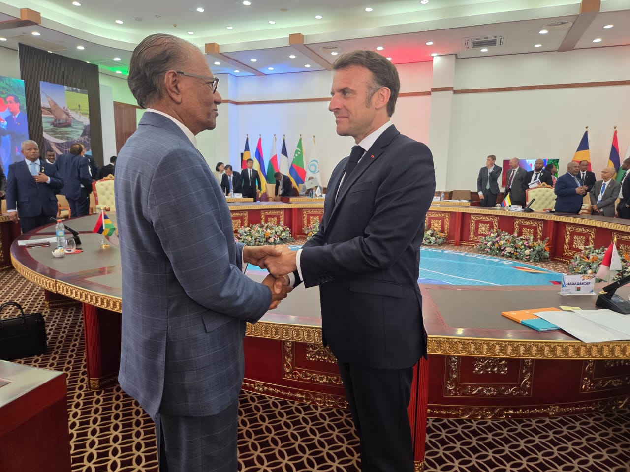 Le Premier ministre, le Dr Navin Ramgoolam, a rencontré le président français, Emmanuel Macron, ce jeudi. C’était lors d’une table ronde à huis clos, axée sur les perspectives de renforcement du système alimentaire et le développement du commerce dans l’océan Indien.