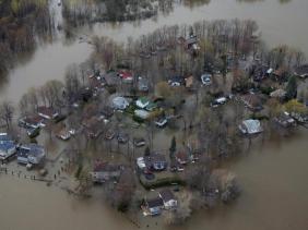 Les environs du Lac Saint-Pierre, un élargissement du fleuve Saint-Laurent entre Québec et Montréal, ressemblent presque à une mer intérieure. Quelques maisons émergent de temps en temps, comme autant d'îles entourées de sacs de sable disposés pour éviter que l'eau ne pénètre à l'intérieur.