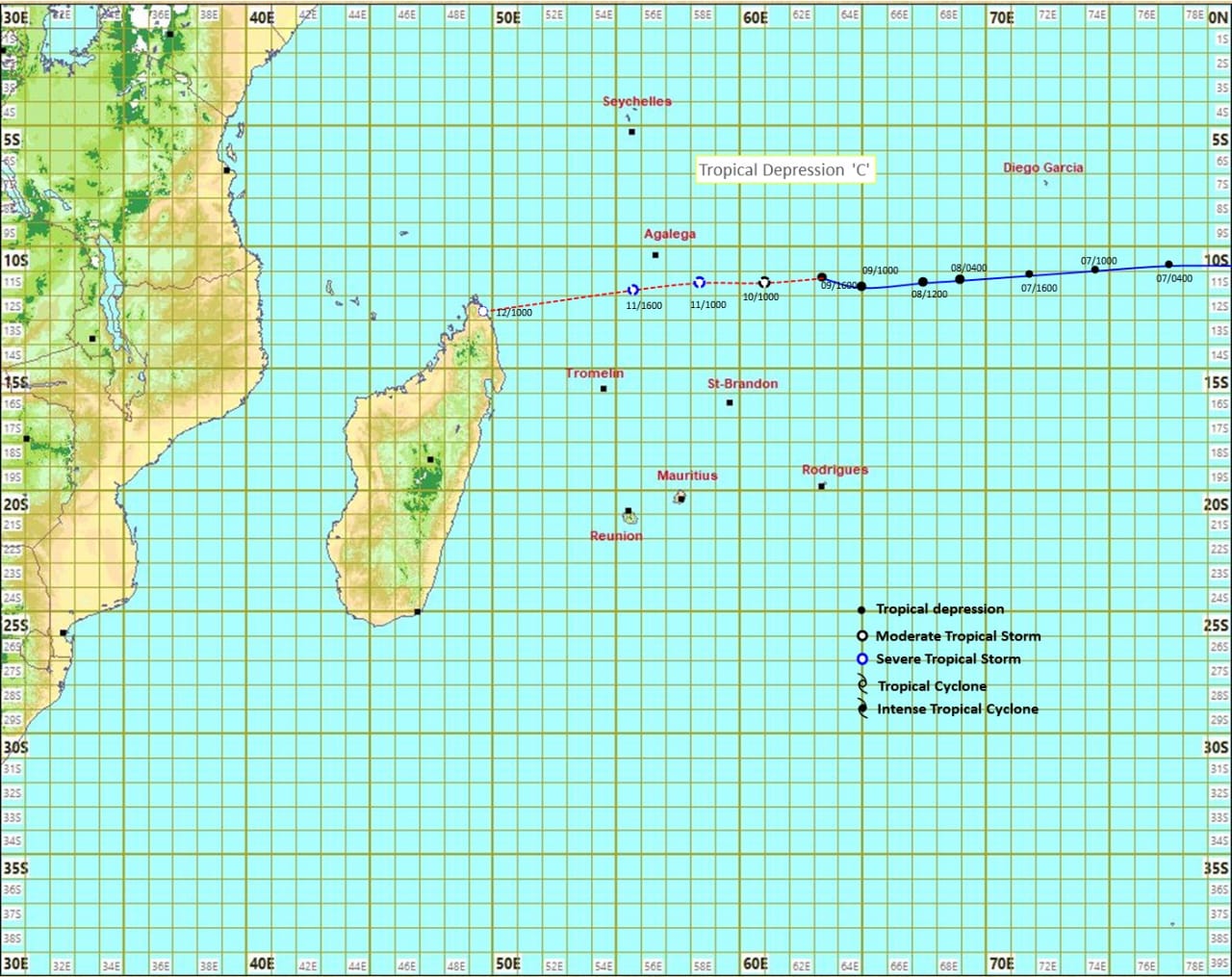 Durant la nuit, la dépression tropicale qui évoluait à l'est-sud-est d'Agalega s'est intensifiée en une tempête tropicale modérée et elle a été baptisée 'CHIDO' par la station météorologique de Maurice à 0400 heures.