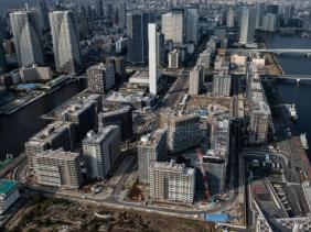 Ce complexe construit dans la baie de Tokyo comprend 24 immeubles devant héberger 11 000 athlètes durant les Jeux Olympiques et il sera inoccupé jusqu'aux épreuves devant débuter le 23 juillet 2021.