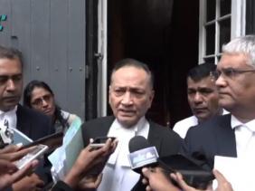 Les reactions des avocats d'Azam Rujubally à leur sortie de la Cour peu après 10 heures aujourd'hui. Ils sont au micro de Meeghan Ponnappa Naiken et de Kavish Pultoo