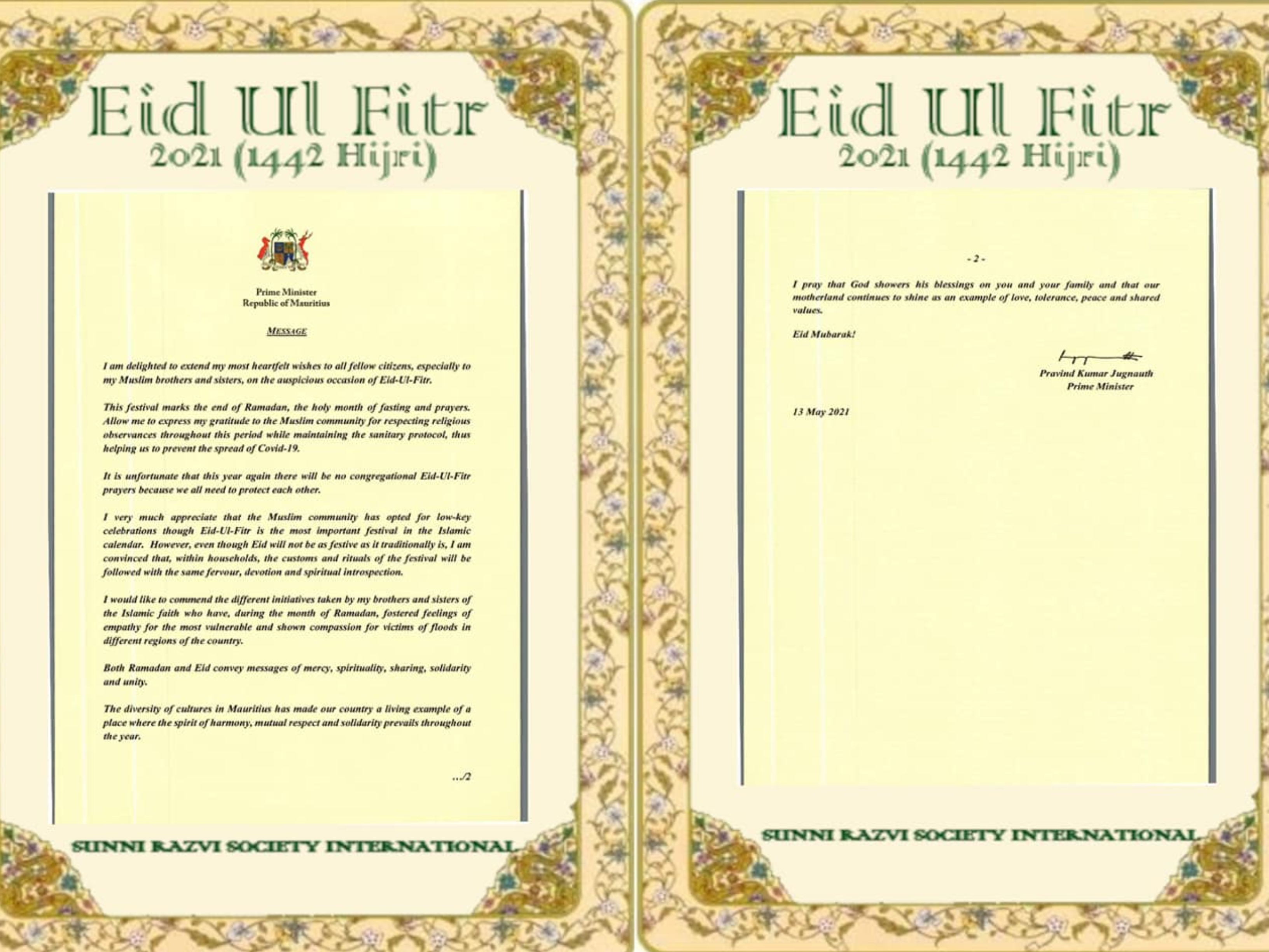 Dans son message, publié sur la page Facebook de la Sunni Razvi society, le Premier ministre a exprimé ses meilleurs vœux à la communauté musulmane pour la fête Eid-ul-Fitr. Pravind Kumar Jugnauth a d’autre-part exprimé sa gratitude aux membres de la communauté d’avoir accompli le devoir religieux tout en respectant le protocole sanitaire en vigueur, aidant ainsi à combattre la prolifération de la Covid-19. Le Premier ministre s’est dit convaincu que la fête a été célébrée dans la ferveur, et la dévotion à la maison. Pravind Kumar Jugnauth souligne que le Ramadan et la Eid sont symboles de paix, de solidarité, et de partage, d’ajouter que l’unité et l’harmonie règne à Maurice.