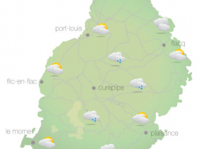 Un fort anticyclone au Sud des Mascareignes fait circuler des alizés modérés sur notre région. Périodes nuageuses ce matin à l'Est, au Sud et sur le Plateau Central avec des ondées par moments. Mi-couvert ailleurs. Partiellement nuageux sur l'ensemble de l'île cet après-midi avec quelques ondées sur les hauteurs.