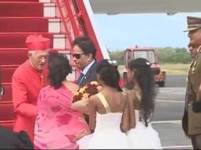 Le Cardinal qui a foulé le sol a 14 heures 15, accueilli chaleureusement par le Premier ministre Sir Anerood Jugnauth et Lady Sarojini Jugnauth.