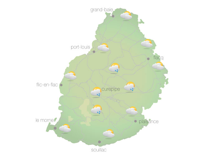 Un vent modéré circule sur la région. Les prévisions pour les prochaines 24 heures annoncent quelques ondées matinales sur les hauteurs, suivies d'un temps généralement beau. Les températures maximales varieront entre 26 et 29 degrés Celsius sur le plateau central, et entre 31 et 34 degrés Celsius sur le littoral. Les températures minimales, quant à elles, oscilleront entre 19 et 21 degrés Celsius sur le plateau central, et entre 24 et 26 degrés Celsius dans les régions côtières. Le vent soufflera du secteur est à environ 20 km/h, avec des rafales pouvant atteindre 50 km/h dans certaines zones. Cependant, ce vent devrait s'affaiblir au cours de la nuit. La mer sera forte au-delà des récifs, avec des houles du secteur sud atteignant environ 2,5 mètres. Les sorties en haute mer sont donc déconseillées.