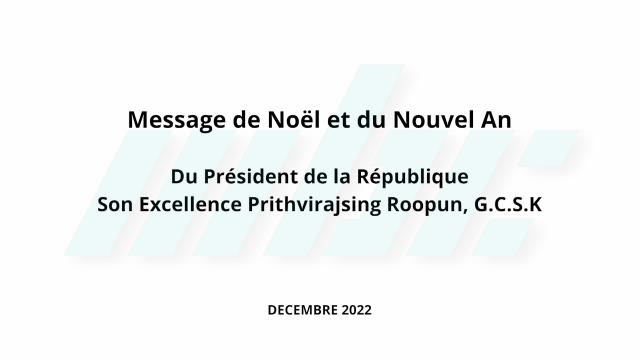 Dec 25, 2022 | Posted by k.soobdhan | 0 Message de Noël et du Nouvel An Du Président de la République Excellence Prithvirajsing Roopun, G.C.S.K View the discussion thread.