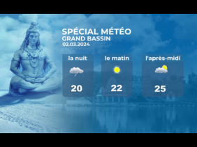 Le ciel sera essentiellement beau cet après-midi. Des nuages associés à une ligne d'instabilité venant de l'Est influenceront le temps local à partir de ce samedi soir. Des averses sont ainsi attendues avec des risques d'orages et de brouillards. Le vent soufflera du Sud-Est de 20 à 30 km/h avec des rafales de 60 km/h. La température maximale sera de 25℃ tandis que la température minimale sera de 20℃. Le temps restera pluvieux jusqu'à ce lundi matin. Des orages et des brouillards sont également prévus. Le vent soufflera du secteur Est de 20 km/h.