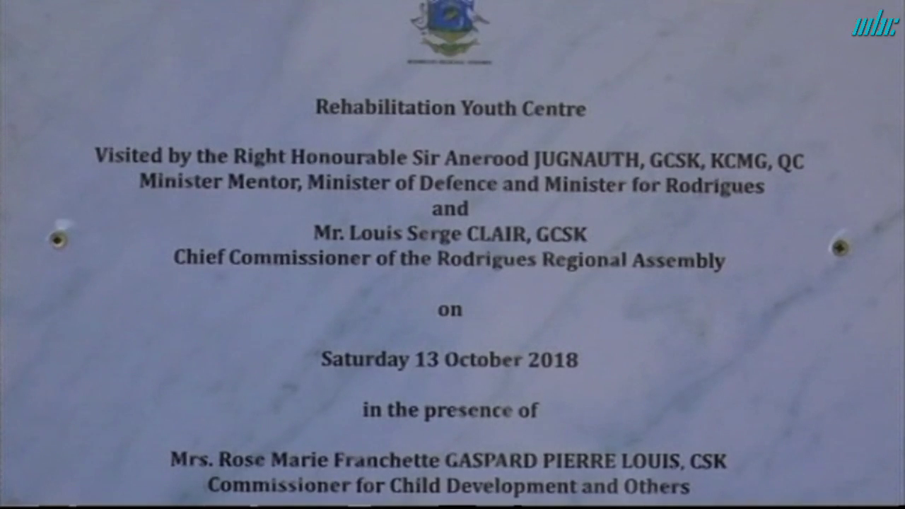 Le ministre Mentor, ministre de Rodrigues et de la défense, Sir Anerood Jugnauth a visité le Centre de réhabilitation des jeunes, situé à Fond Baie aux Huîtres. Sir Anerood Jugnauth était accompagné de son épouse Lady Sarojini Jugnauth, du chef commissaire Serge Clair, des commissaires de l'Assemblée régionale et des députés de l'Assemblée nationale de Rodrigues. Le ministre Mentor a pu visiter le Centre de Réhabilitation qui est d'une capacité de neuf jeunes. Sir Anerood Jugnauth a également signé le livre des visiteurs.