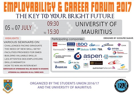 C’est l’objectif de l’Employability and Career Forum qui a débuté ce mercredi 5 juillet 2017 à l’auditorium Octave Wiehe et va durer 3 jours.
