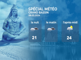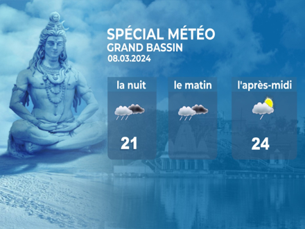 Les températures minimales varieront entre 21 et 23 degrés sur le plateau central et entre 25 et 27 degrés dans les régions côtières. Les averses deviendront graduellement moins fréquentes dans l'après-midi. Les températures maximales oscilleront entre 24 et 27 degrés sur les hauteurs et entre 30 et 32 degrés sur le littoral. Le vent soufflera du Secteur Est de 25 km/h avec des rafales de 50 km/h. La mer sera forte au-delà des récifs avec des vagues atteignant les 2 mètres 50. Les sorties en haute mer sont déconseillées.