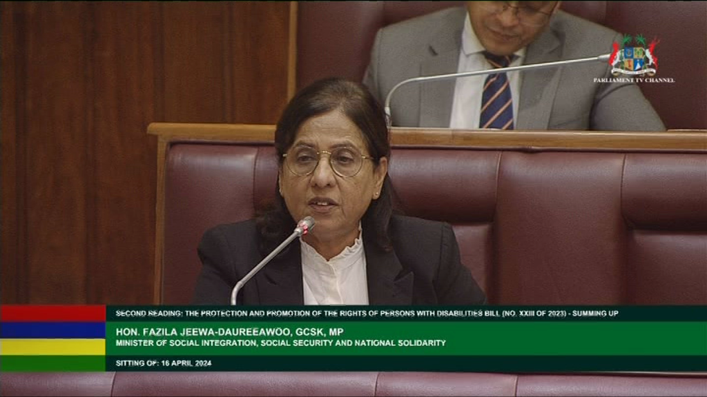 Le « Protection and Promotion of the Rights of Persons with Disabilities Bill » a été voté avec amendements à l'Assemblée nationale. Ce projet de loi veut garantir la protection et la promotion des droits des personnes présentant des handicaps. Afin de soutenir les personnes en situation de handicap à atteindre leur plein potentiel dans la société. Lors de son summing up, la ministre Fazila Jeewa-Daureeawoo a évoqué l’importance de la création de la « National Disability Authority » qui a pour objectif entre autres de garantir un environnement accessible et de permettre aux personnes en situation de handicap de mener une vie autonome.