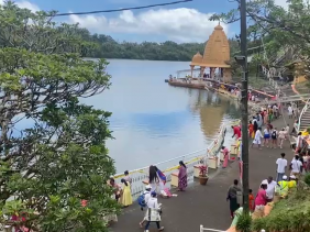 Au Ganga Talao, les urgentistes en patrouille sont sur le qui-vive. Ils continuent de veiller au grain à la sécurité des pèlerins comme des visiteurs d'ici et d'ailleurs. Aux alentours du pied de l'imposante statue de Shiva, les derniers préparatifs s'accélèrent pour accueillir divers programmes socio-culturels. Dans une ambiance bon enfant, les flashs photographiques des passants étrangers retentissent. Ils ont de quoi en mettre plein la vue, avec la plus grande statue de Durga du monde devant eux, tandis que les fidèles hindous continuent de converger en nombre en ce début d'après-midi. Et du côté du lac sacré, au chant des oiseaux et des dévots s'entremêlent les sons des cloches. Quelques fines gouttes de pluie dans l'air et l'âme spirituelle des plus fidèles s'apaise.