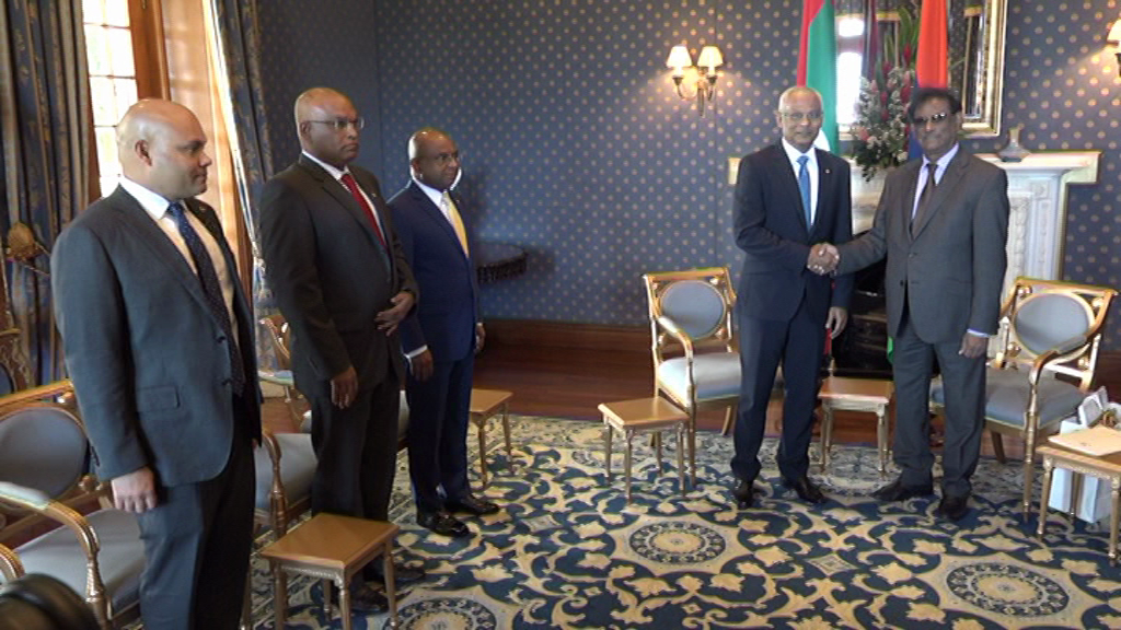 Le président de la République par intérim, Barlen Vyapoory, a reçu la visite du président des Maldives ce matin à la State House, à Le Réduit. Les Jeux des Îles de l’Océan Indien, les relations bilatérales et diplomatiques cordiales entre les deux îles étaient parmi les sujets discutés au cours de la rencontre entre les deux présidents.