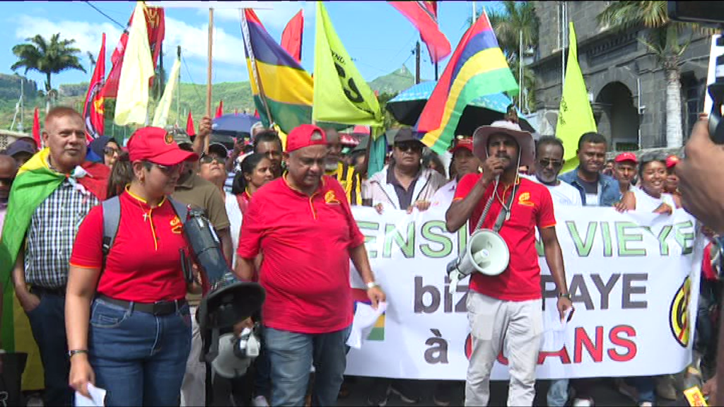 Plusieurs plateformes syndicales ont manifesté dans les rues de Port-Louis à la mi-journée ce samedi, aux côtés des travailleurs de différents secteurs. Ils ont protesté contre le relèvement de l’âge de la pension de vieillesse à 65 ans. La marche de protestation a débuté au Champ de Mars pour se terminer au jardin de la Compagnie.