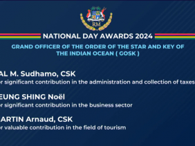 À l’occasion de la fête nationale 2024 et sur conseil du Premier ministre Pravind Kumar Jugnauth, le Président de la République de Maurice, Prithvirajsing Roopun, a conféré la plus haute distinction de l’État, la GCSK (Grand Commander of the Order of the Star and Key of the Indian Ocean), au Dr Louis Jean Claude Autrey pour sa contribution dans les domaines de l'éducation et de la science. Louis Olivier Bancoult pour sa précieuse contribution pour le bien-être de la communauté chagossienne. Harvesh Kumar Seegoolam pour sa précieuse contribution dans le secteur bancaire et à titre posthume à Dev Virahsawmy pour sa contribution dans le domaine de l'éducation, plus particulièrement pour la promotion du kreol mauricien et de la littérature. Puis, 10 autres personnes ont été honorées au titre de GOSK (Grand Officer of the Order of the Star and Key of the Indian Ocean) dont Anil Kumarsing Dip, Franceau Grandcourt, à titre posthume à Eric Guimbeau, à Sudhamo Lal, Noel Leung Shing, Arnaud Martin, Premode Neerunjun, Satish Purmessur, Oomar Ramtoola et Rita Venkatasawmy. Pour la médaille de CSK, Commander of the Order of the Star and Key of the Indian Ocean, il y a 8 récipiendaires. Plusieurs autres décorations ont été décernées par le Bureau de la Présidence ce 12 mars, comme le OSK, le PDSM, le MSK, le President’s Long Service and Good Conduct Medal, entre autres, et cela pour honorer des centaines d’autres compatriotes pour leur contribution ou service à l'épanouissement, au progrès et à la prospérité de la République de Maurice.
