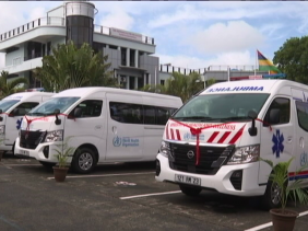 Le ministère de la Santé s'est doté de neuf véhicules pour renforcer sa flotte de service ambulancier. Il s’agit d’un don de l’Organisation mondiale de la Santé (OMS), qui fait partie des mesures prises dans le cadre de la réponse à la Covid-19. Une cérémonie de remise des clés s’est ainsi tenue le samedi 17 février 2024 à l’hôpital SSRN à Pamplemousses. L’occasion également de récompenser l’hôpital du Nord pour ses capacités renforcées en matière de normes sanitaires, dans le cadre du programme « Infection Prevention Control ». Le point avec Daivik Rajcomar ci-dessous :
