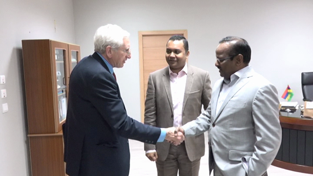 Jake Mendelssohn, the Outreach Director du Connecticut Invention Convention des États-Unis a rencontré le ministre des services financiers, Sudhir Sesungkur pour une visite de courtoisie ce mardi 12 juin au siège de son bureau. C'était l'occasion pour Jake Mendelssohn de parler de sa rencontre avec les jeunes d'ici. Jake Mendelssohn rencontre le Présdient de la Republique par intérim ce mercredi 13 juin à Réduit.