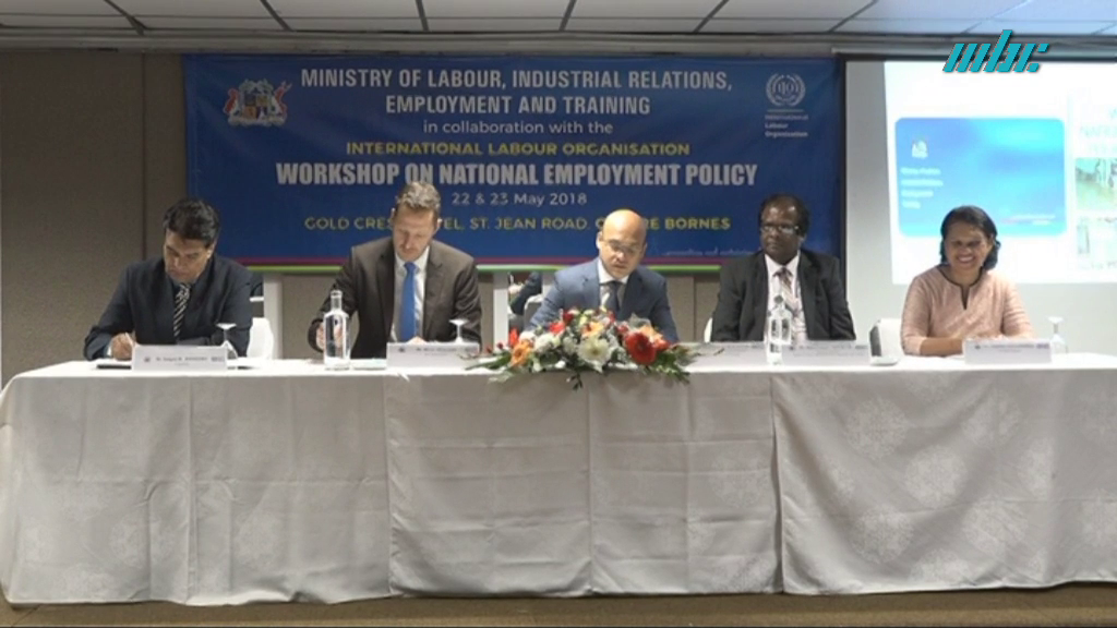 Atelier de travail ce mardi 22 Mai 2018 organisé par le ministère du travail et l'Organisation internationale du Travail à Quatre-Bornes. Il était axé sur la politique nationale d'emploi. Lors de cette séance, il a été surtout question de trouver des solutions au problème du chômage et sur le travail décent.